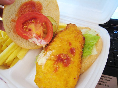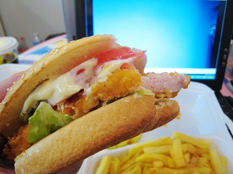 這是chicken burger吧......